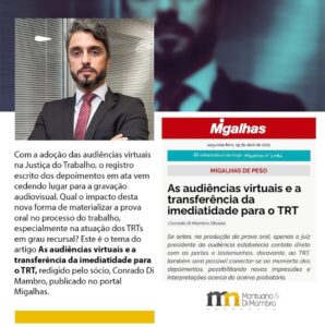 2 A título de exemplo, recomenda-se a leitura dos precedentes a seguir enumerados, todos originários do Tribunal Regional do Trabalho da 3ª Região: 0010612-26.2020.5.03.0086; 0010298-48.2020.5.03.0129; 0010070-92.2020.5.03.0058; 0011182-78.2019.5.03.0043.