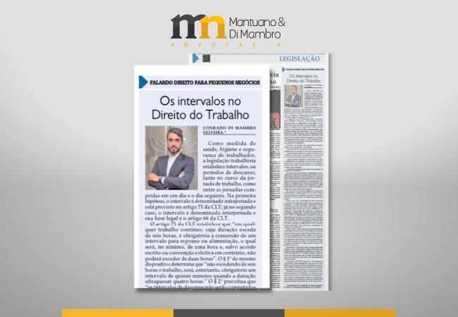 O sócio MNDM, Conrado Di Mambro, escreveu o artigo “Os intervalos no Direito do Trabalho” no Diário do Comércio. “A legislação trabalhista estabelece intervalos, ou períodos de descanso, tanto no curso da jornada de trabalho, como entre as jornadas cumpridas em um dia e o dia seguinte. Na primeira hipótese, o intervalo é denominado intrajornada […]
