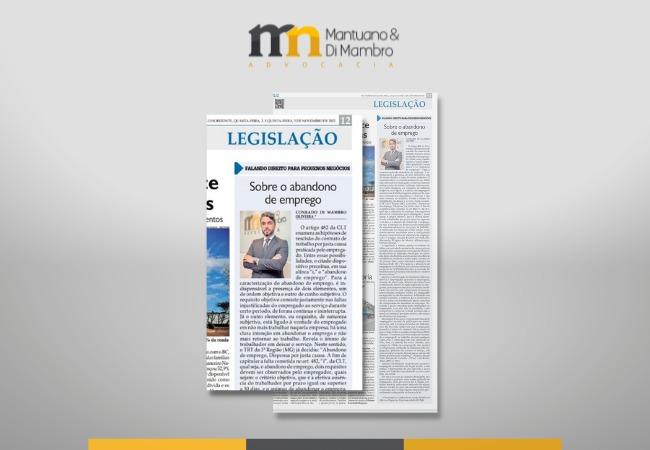 O sócio MNDM, Conrado Di Mambro, escreveu o artigo “Sobre o abandono de emprego” no Diário do Comércio. A coluna “Falando direito para Pequenos Negócios” é fruto da parceria da Comissão de Apoio Jurídico às Micro e Pequenas Empresas da OAB/MG (@comissaoapjuridicomicroempresa), presidida pelo sócio, e o portal Diário do Comércio. Confira o artigo pelo […]