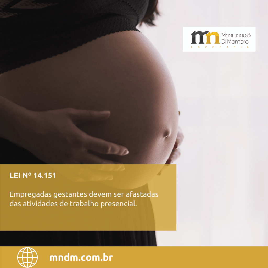A Lei 14.151/2021, tem como objetivo efetivar a proteção à maternidade e ao nascituro, reduzindo os riscos da Covid.